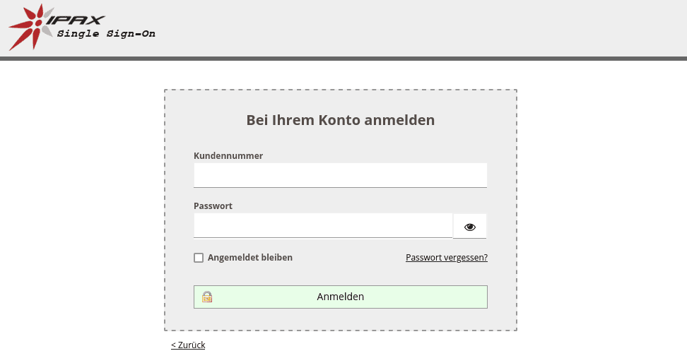 Nach dem Klick auf „Login“ werden Sie zu unserem IPAX Single Sign-On Service weitergeleitet:
