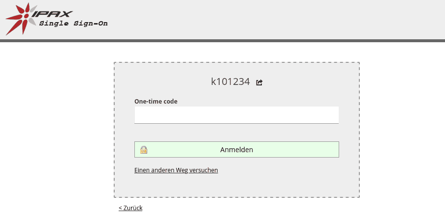 Sollten Sie z.B. Ihr Handy verloren haben und somit nicht mehr auf Ihre Authenticator-Anwendung zugreifen können, kann entweder über einen Klick auf „Einen anderen Weg versuchen“ wahlweise die Authentifizierung über einen Security-Token (wenn konfiguriert) oder die Wiederherstellungscodes erfolgen.